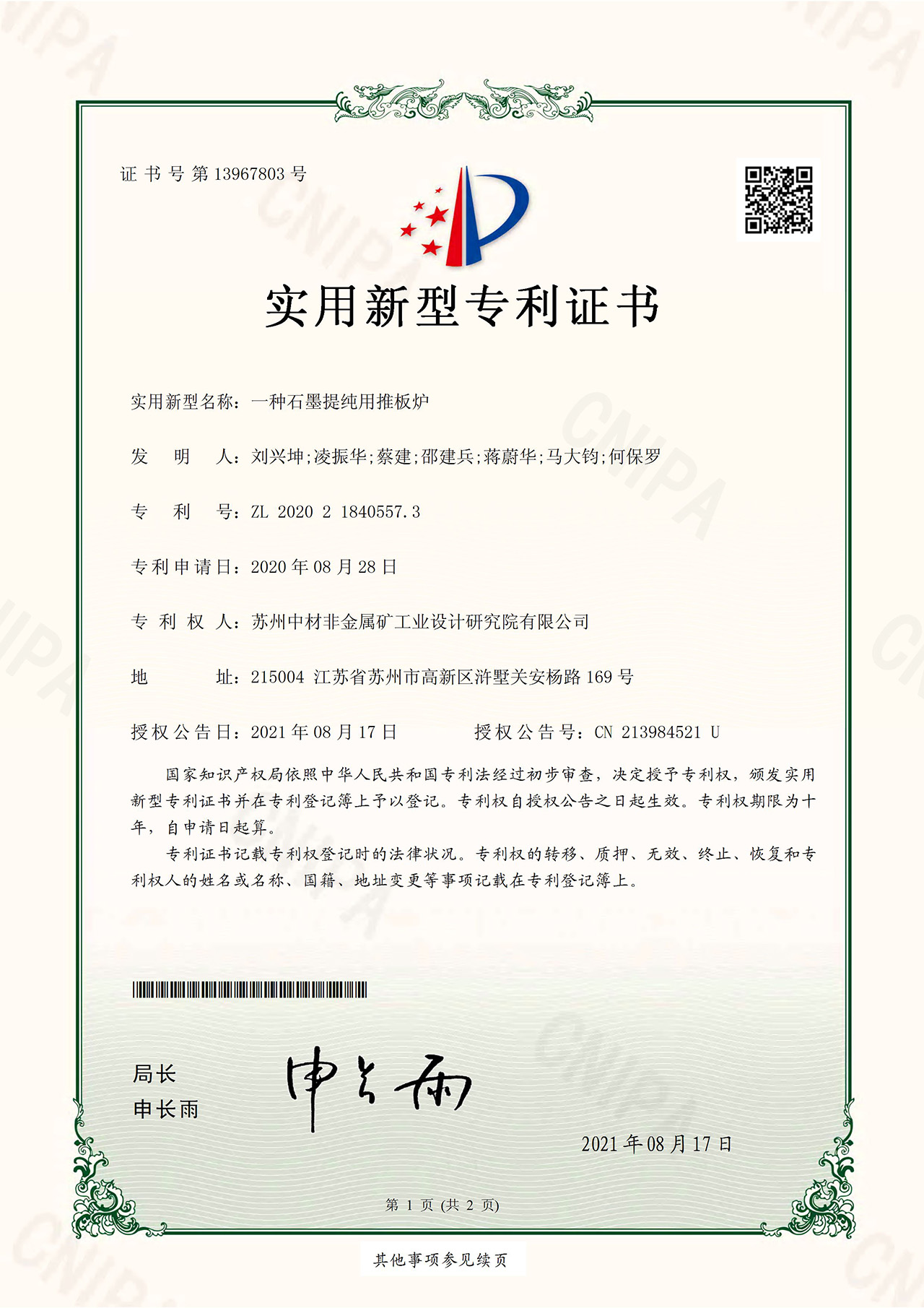 公司持續加大研發投入強度,在國家工程技術研究中心的研發平臺下,年度研發投入占營業收入超7%,獲批了國家級博士后工作站1個,在站博士后研究員2名。公司在非金屬礦物加工技術、礦物材料產品開發、關鍵裝備開發、規模化加工技術及裝備集成等方面擁有自主知識產權專利40余項。