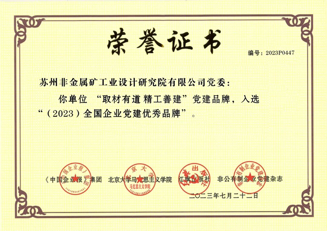 喜訊!蘇州非礦院“取材有道 精工善建”黨建品牌”入選2023年全國企業(yè)黨建優(yōu)秀品牌