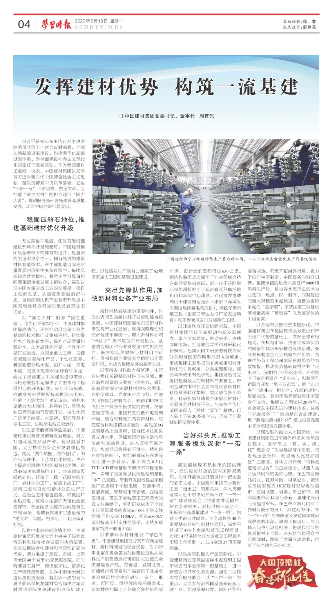 《學習時報》刊發周育先署名文章:發揮建材優勢 構筑一流基建