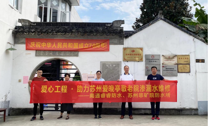 姑蘇區愛晚亭福利院向蘇非有限防水所王玉峰贈送錦旗